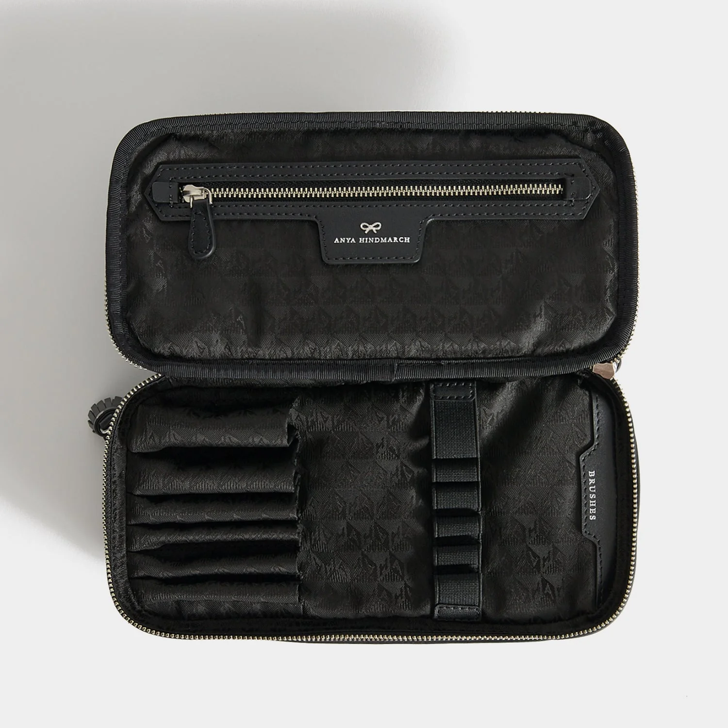 Our Large Makeup bag has space for everything in your kit, from brushes to bottles – here reimagined in studded recycled satin, which is padded for extra protection while remaining beautifully lightweight. It has two tassel-zippered compartments – one for makeup bottles and tubes, and the other for brushes, with elasticated inserts to keep them neat – and embossed labels for optimum organisation. There’s also a smaller zipped pocket for tweezers, lash glue, and other tiny items.